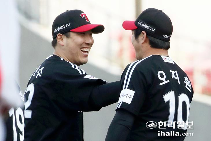 선두 오지환이 좌중월 2루타로 나간 뒤 후속 타자의 연속 땅볼 때 홈을 밟아 팀의 첫 번째 득점을 냈다.